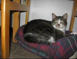 Mickey was one if Kalie's two cats prior to meeting Mike. Mike may not have been a cat person when he met Kalie, but if anything helped him come around, it was Mickey. There has never been a cat that loved to cuddle more than Mickey. He didn't care who you were – if you sat down to watch TV, he needed to come and just drape himself over you...
