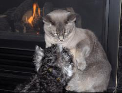 Toby's greatest accomplishment so far in his young life was saving his sister from an imminent coyote attack in our backyard, keeping the coyote at bay until Mike could get there to chase it off! Very impressive!