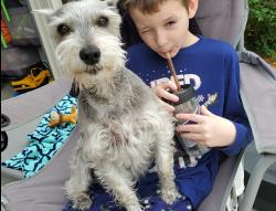 Toby joined us in the summer of 2019 with the hope of getting a schnauzer puppy to "learn good habits" from Chloe. It was a good plan that Kalie had, but Toby may be a little too strong willed for that! He is definitely "all boy" as Kalie likes to say!