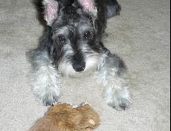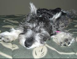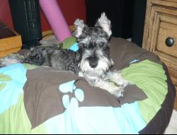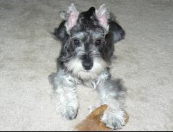 At right around 11 lbs., she is the smallest miniature schnauzer we have had. Mike was initially quite opposed to getting another dog at that time, but Kalie convinced him (read: made him) and Phoebe has turned into a daddy’s girl... She loves to give kisses and loves to have her belly rubbed.