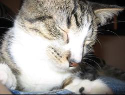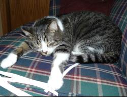 Mickey was one if Kalie's two cats prior to meeting Mike. Mike may not have been a cat person when he met Kalie, but if anything helped him come around, it was Mickey. There has never been a cat that loved to cuddle more than Mickey. He didn't care who you were – if you sat down to watch TV, he needed to come and just drape himself over you...
