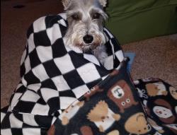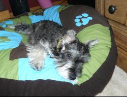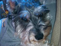 At right around 11 lbs., she is the smallest miniature schnauzer we have had. Mike was initially quite opposed to getting another dog at that time, but Kalie convinced him (read: made him) and Phoebe has turned into a daddy’s girl... She loves to give kisses and loves to have her belly rubbed.