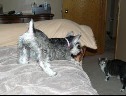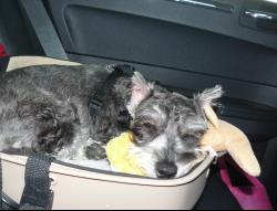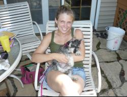We joke that Chloe was our "accident" dog. We went into a pet store looking for a few koi for our new koi pond, and found this little schnauzer with a reverse mohawk and neither Kalie or Mike could say no to her. So we came home with her that day!